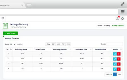Interface d'administration
